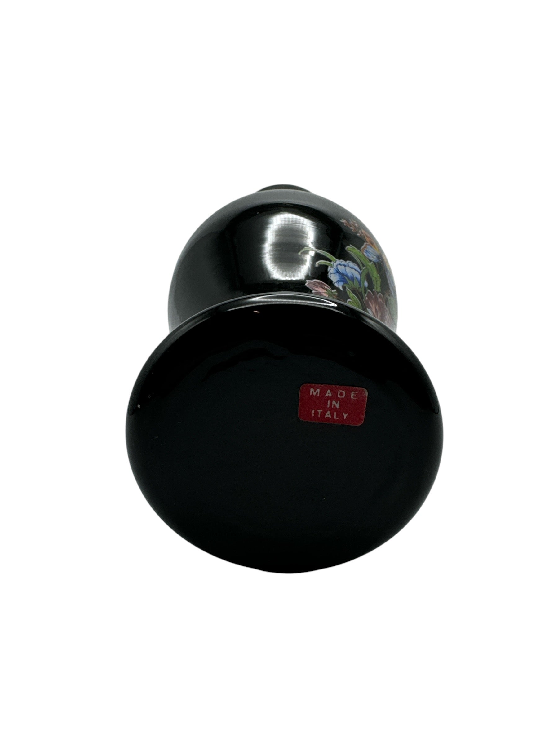 Crafted in Italy, this opulent vase boasts a striking design of delicate flowers and graceful butterflies. No imperfections to be found. Measuring 7.5cm in length, width, and standing 25cm tall, it is a flawless addition to any collection.