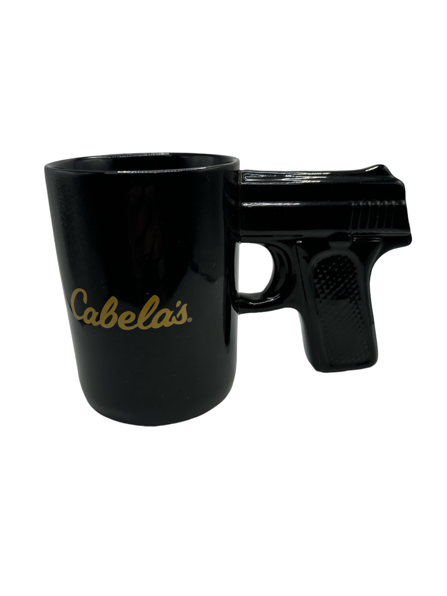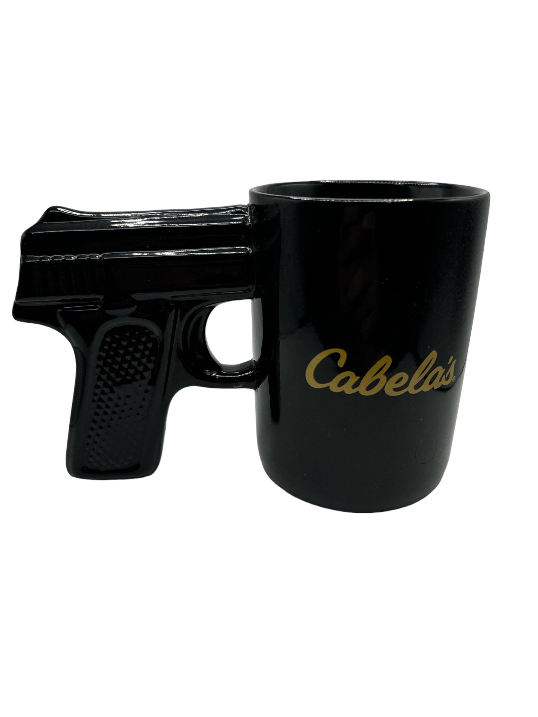 This 16oz black ceramic mug features a unique gun grip handle. GUC.