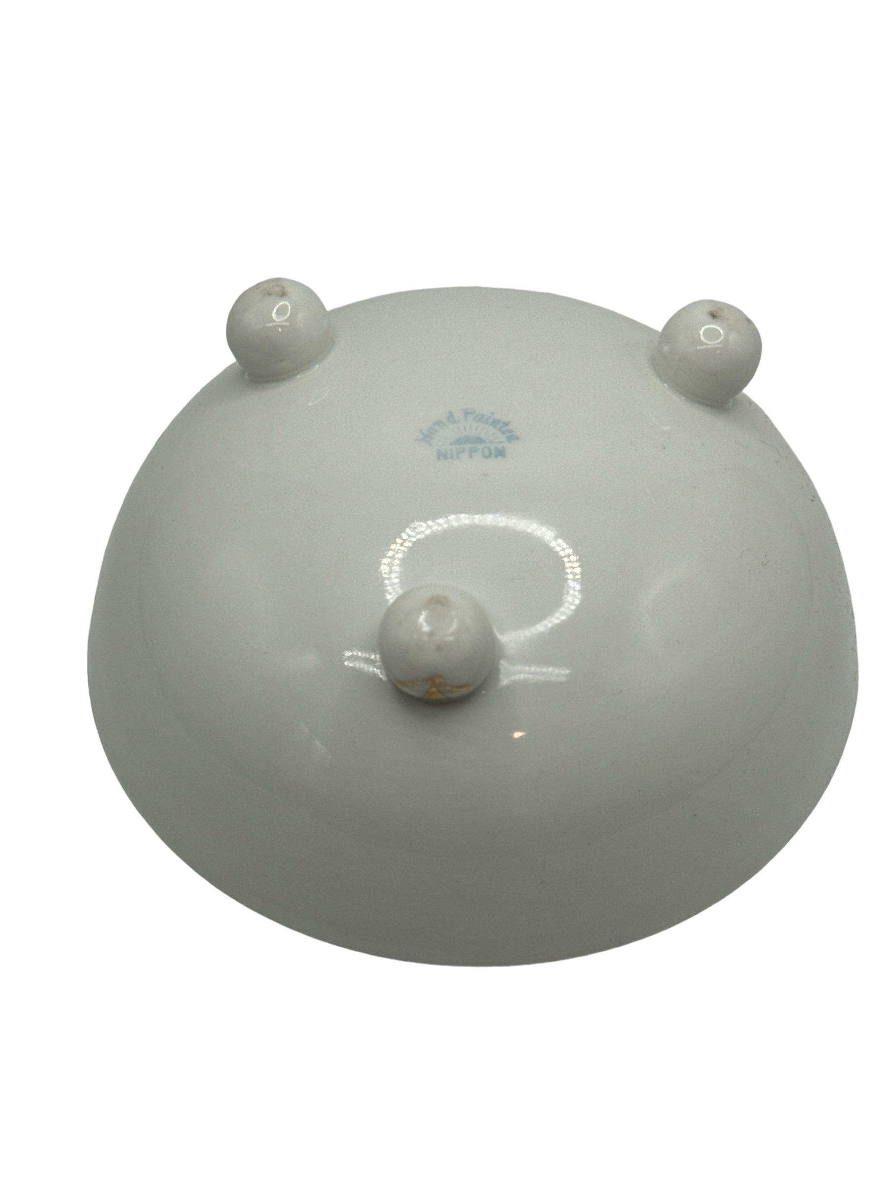 This elegant dish features floral designs on both sides, carefully crafted in Nippon. Although pre-owned, it still exudes a sense of sophistication and exclusivity.