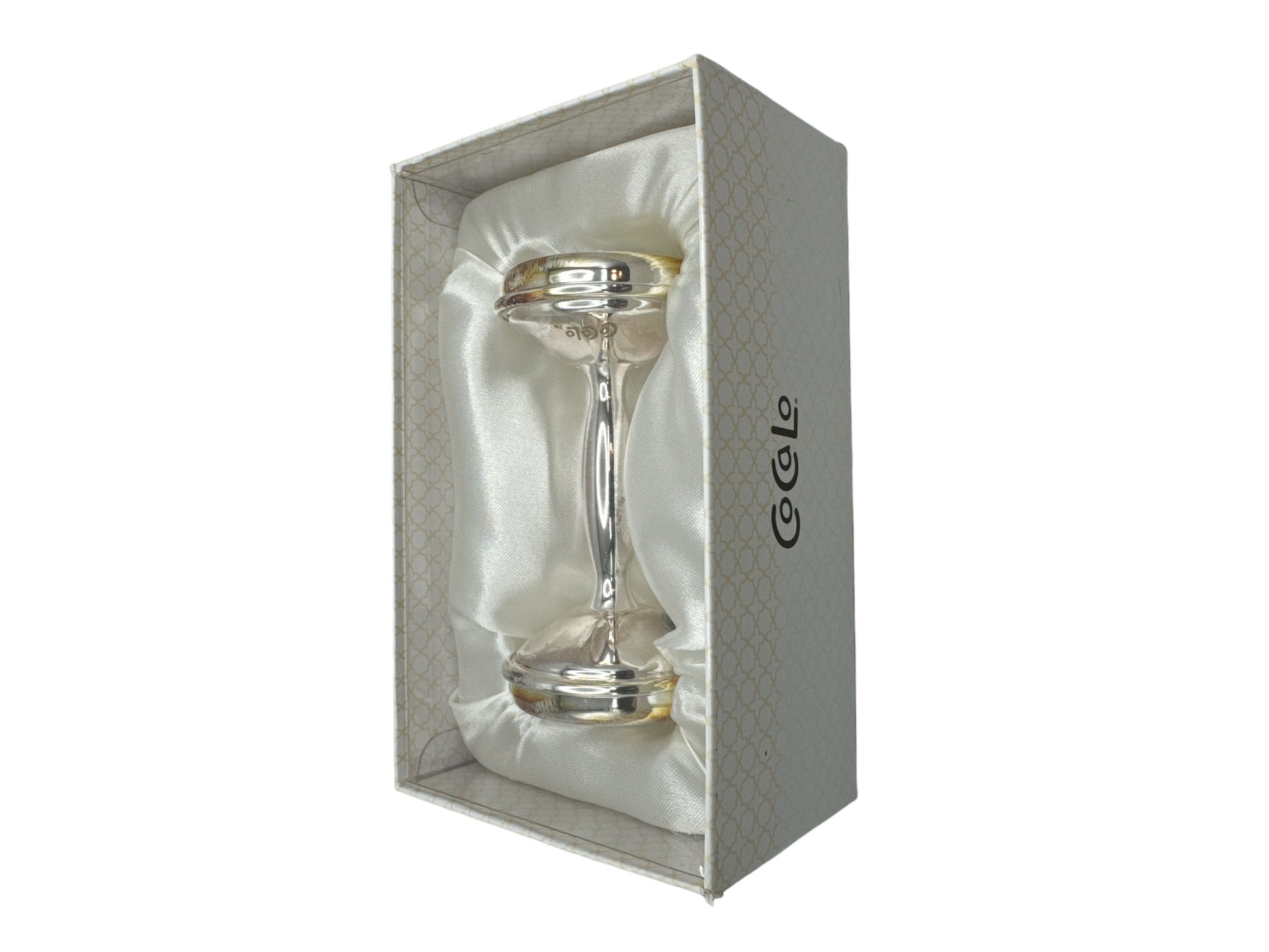 Brand new and shiny silver-plated baby rattle with two adorable elephant figures on each end - comes in a box and just needs a little polishing to make it sparkle!