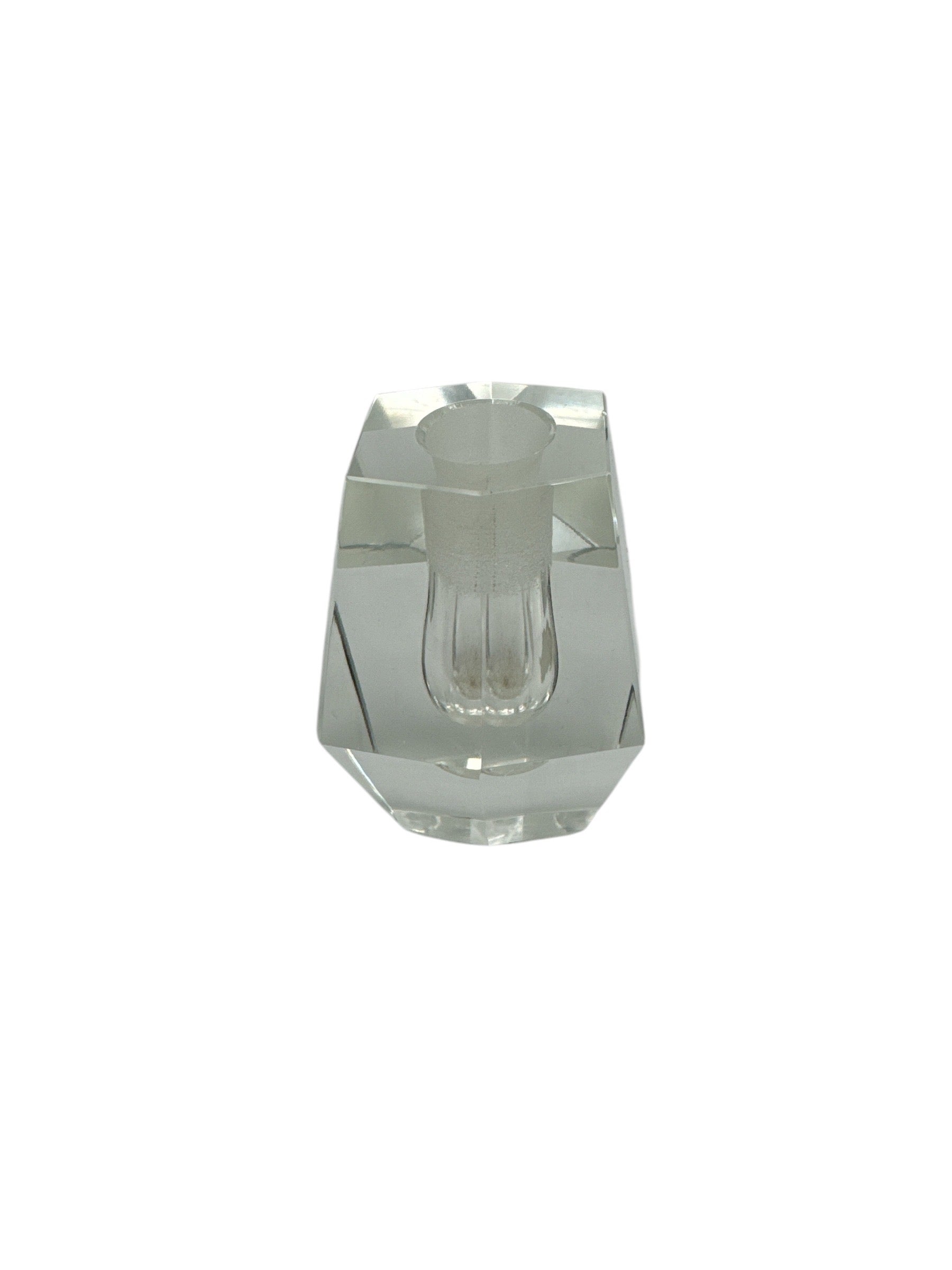 This versatile piece can function as a paperweight, bud vase or pen/pencil holder. Its vintage nature is evident from the remnants of a silver & yellow foil sticker that reads "Superior Quality Hand Cut Made in Japan." While there may be a few flea bites on the top edge, they are scarcely noticeable.
