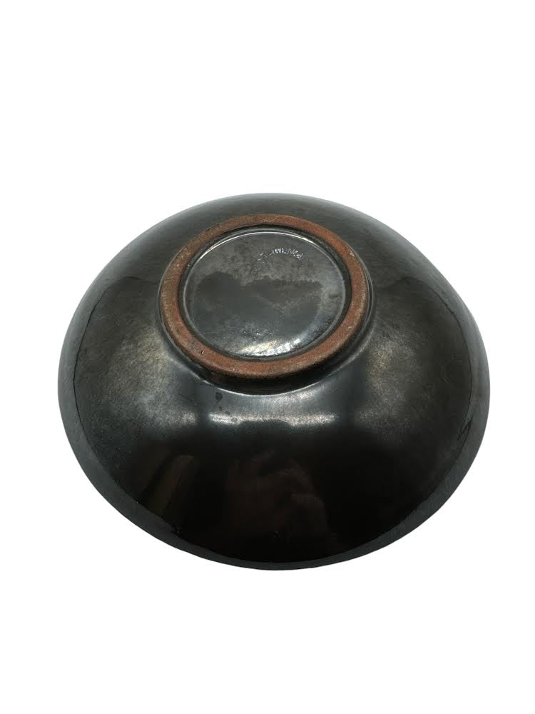 This mid century pottery dish was uniquely crafted in West Germany during the 1960s. Its intricate design features a delicate gold edge, which may display signs of age and wear. Fear not, for this dish is free of any chips or cracks, making it a perfect addition to your collection. Measuring 19cm in length, 17.75cm in width, and 4cm in height, this elegant piece showcases the skilled craftsmanship of its makers.
