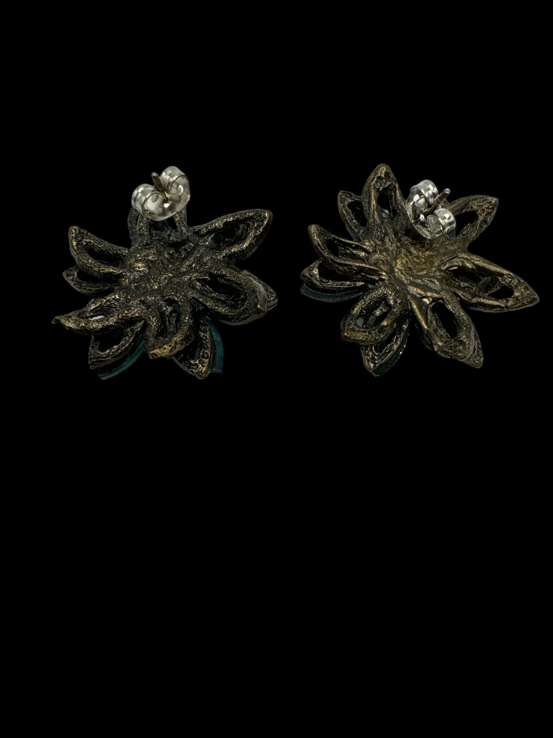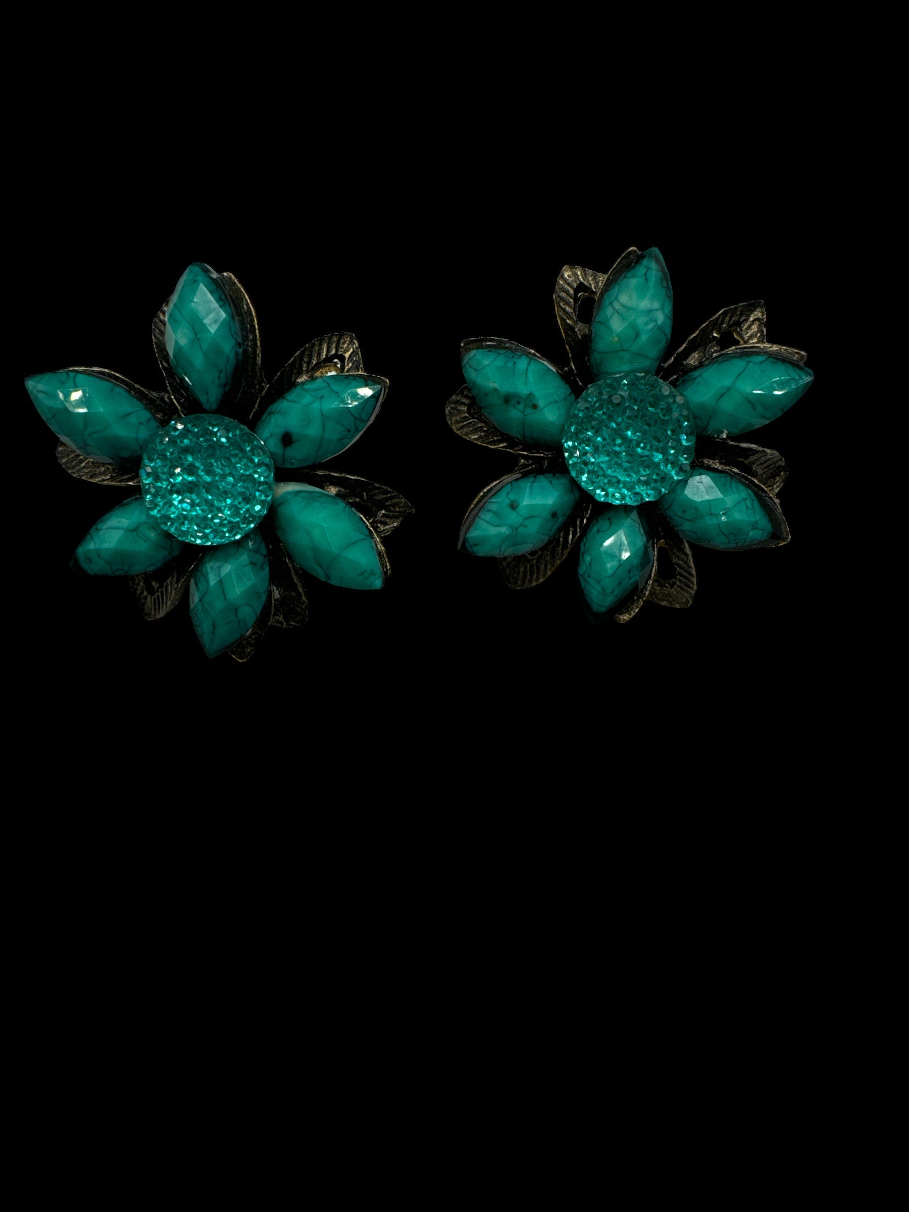 Experience the luxurious beauty and intricate design of these Faux Turquoise Earrings! Each piece features stunning, pierced faux stones with delicate metal detailing on the back. As you wear them, you'll feel like a true fashionista, and no one will be able to guess that they are not genuine turquoise. Plus, with no makers mark, you can be sure you're receiving a unique and exclusive set of earrings. Don't miss out on adding these to your collection!