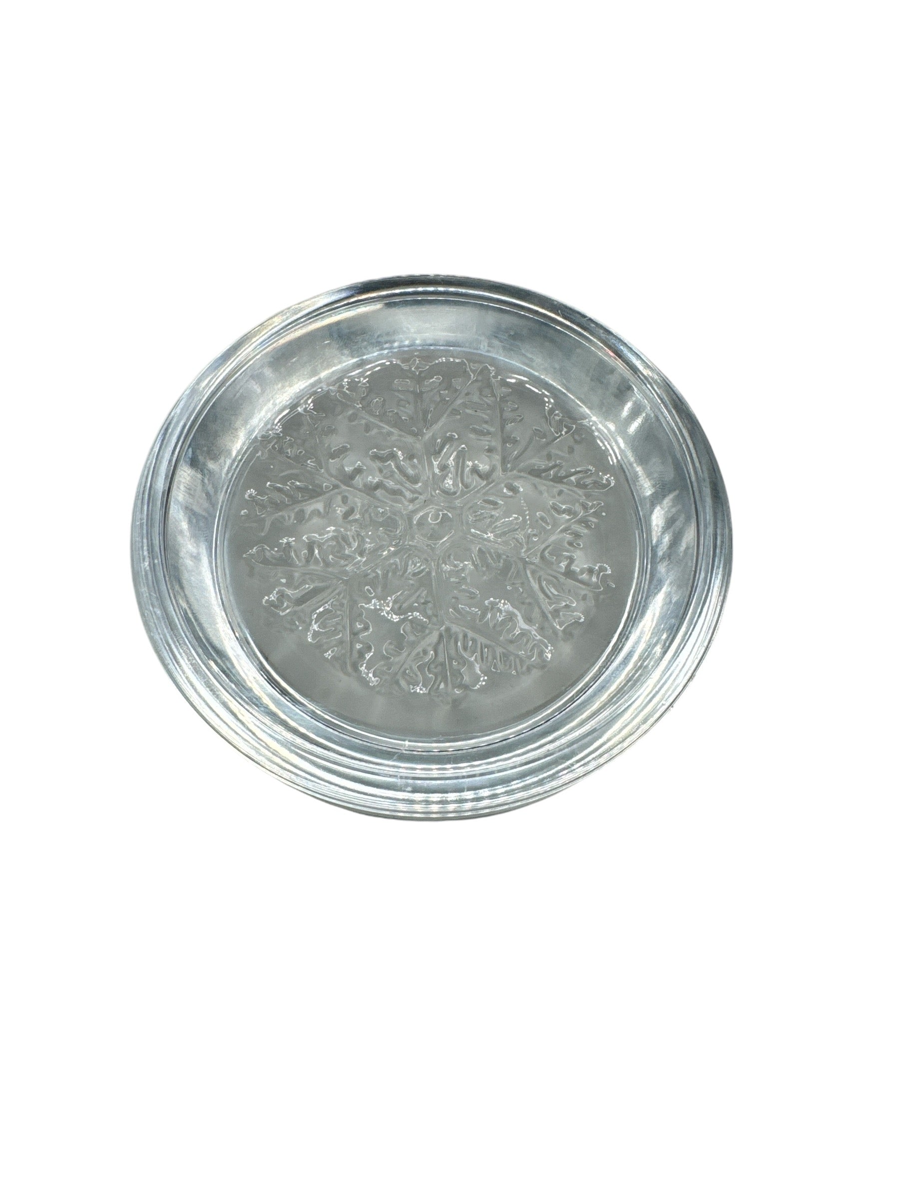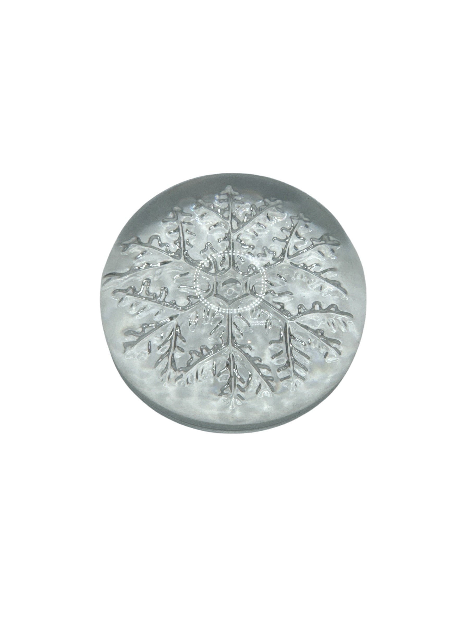 Elevate your holiday décor with this stunning clear snow flake art glass piece, impeccably preserved with no chips or cracks. Measuring 9 cm in length, 9 cm in width, and 4.25 cm in height, this exquisite addition will add a touch of sophistication to any space.
