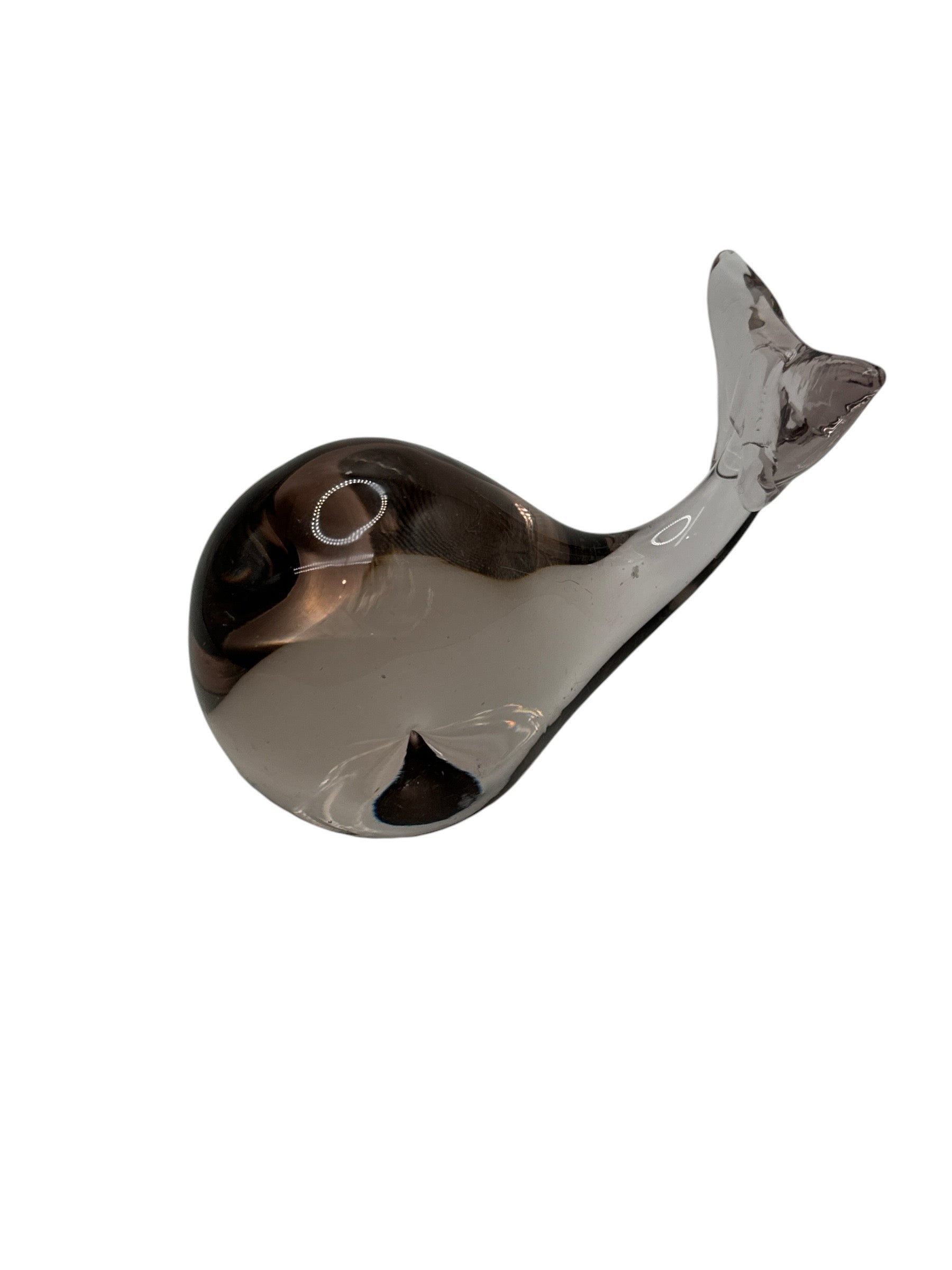 Indulge in the seductive allure of our smoked grey whale paperweight, a stunning addition to any stylish space. Measuring 10 cm L x 4.5 cm W x 6 cm H, this piece is in pristine condition, ready to elevate your decor and captivate your senses.