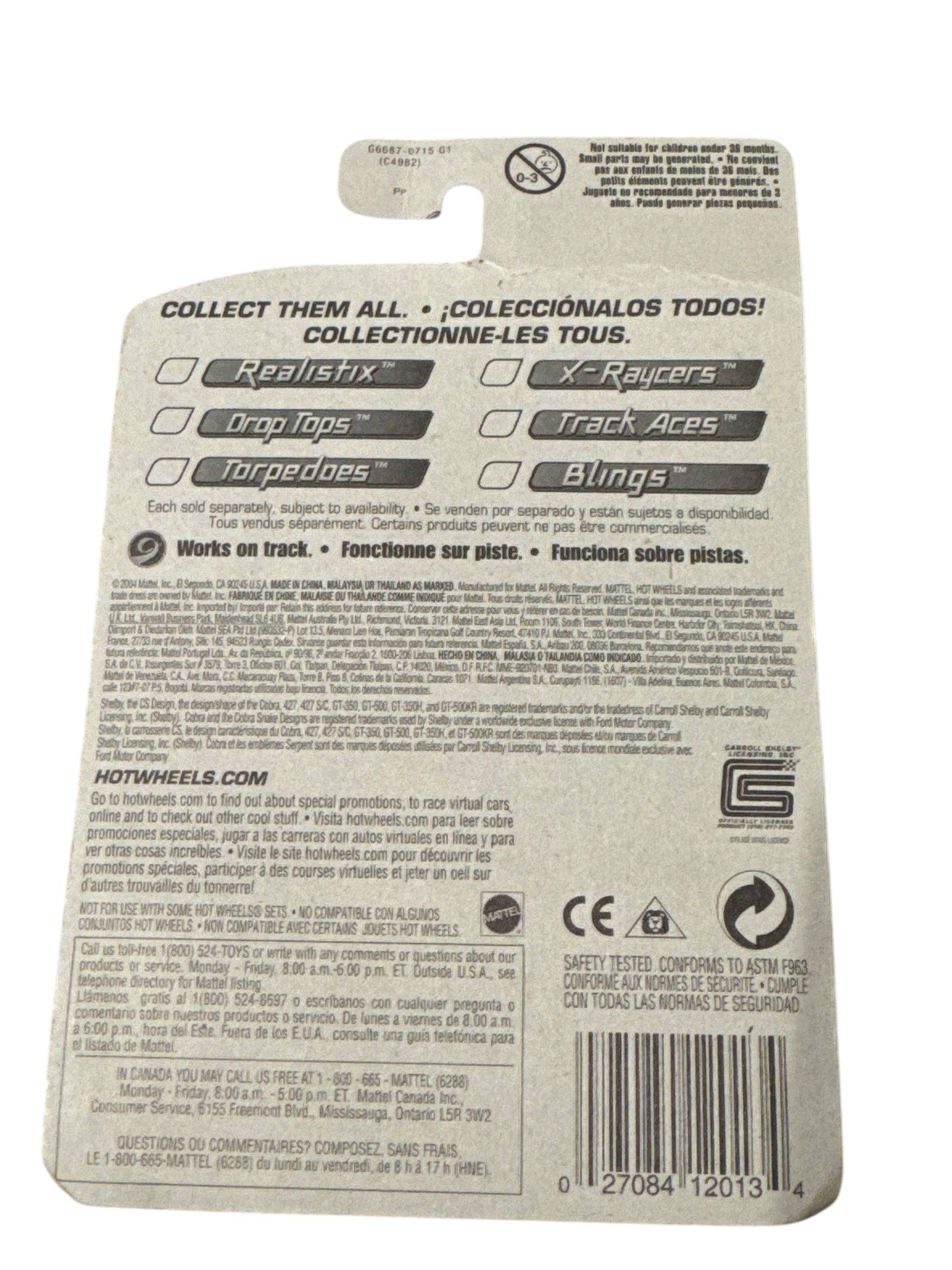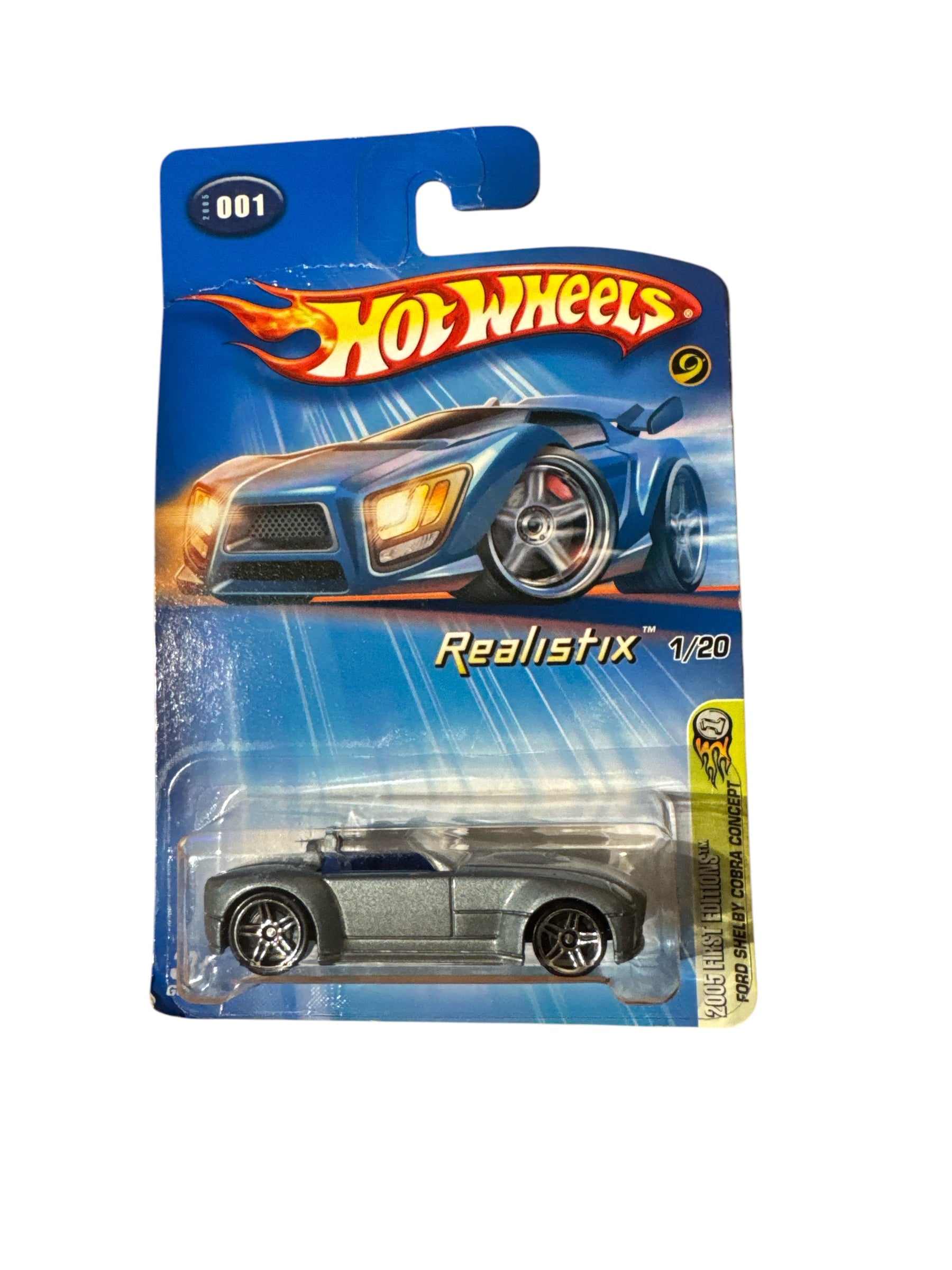 This first edition of the Hot Wheels Ford Shelby Cobra Concept, model #6687 2005-001, comes in its original packaging and features realistic design details.
