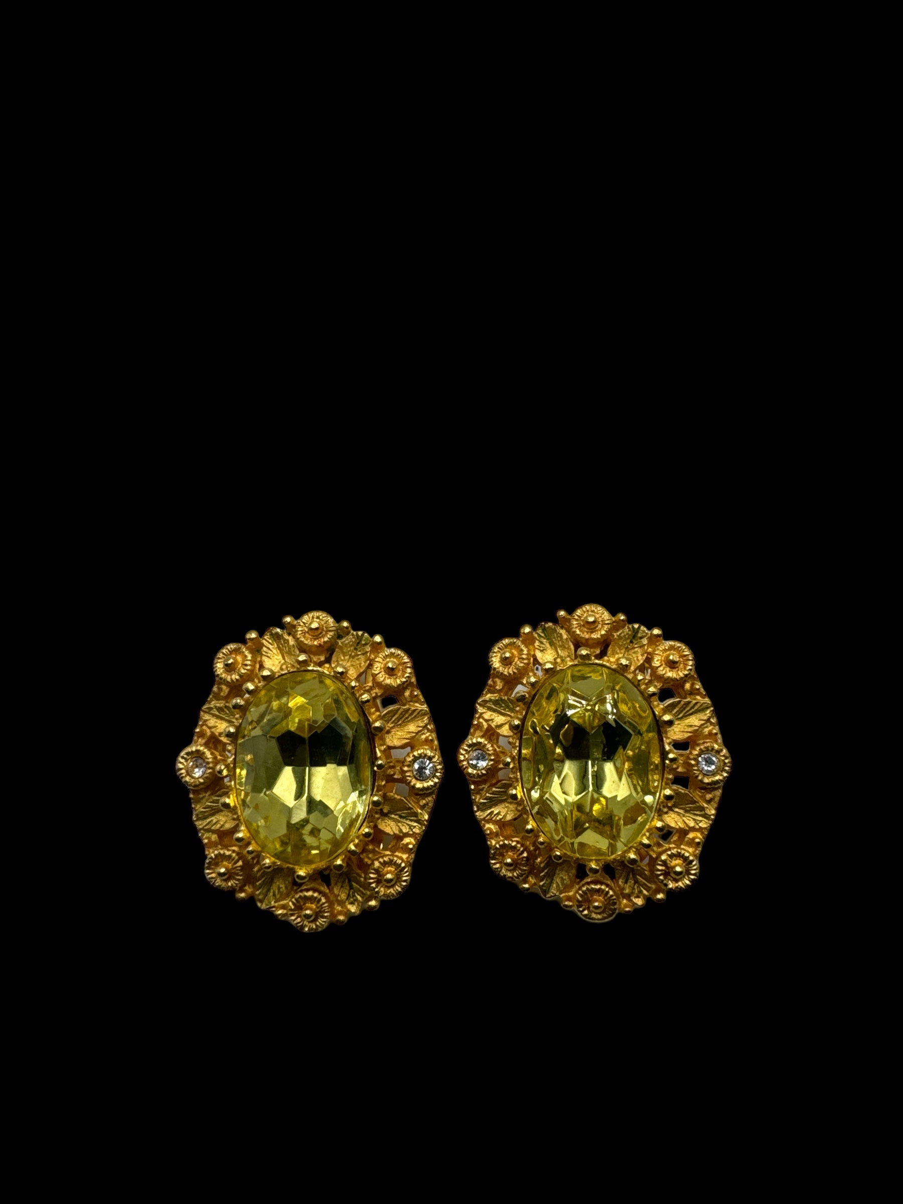 Experience the stunning beauty of Jackie Kennedy's Camrose & Kross clip on earrings featuring an eye-catching peridot green stone set against a luxurious yellow gold background. In excellent used condition, these earrings are a must-have for any fashion-forward individual looking to make a statement.