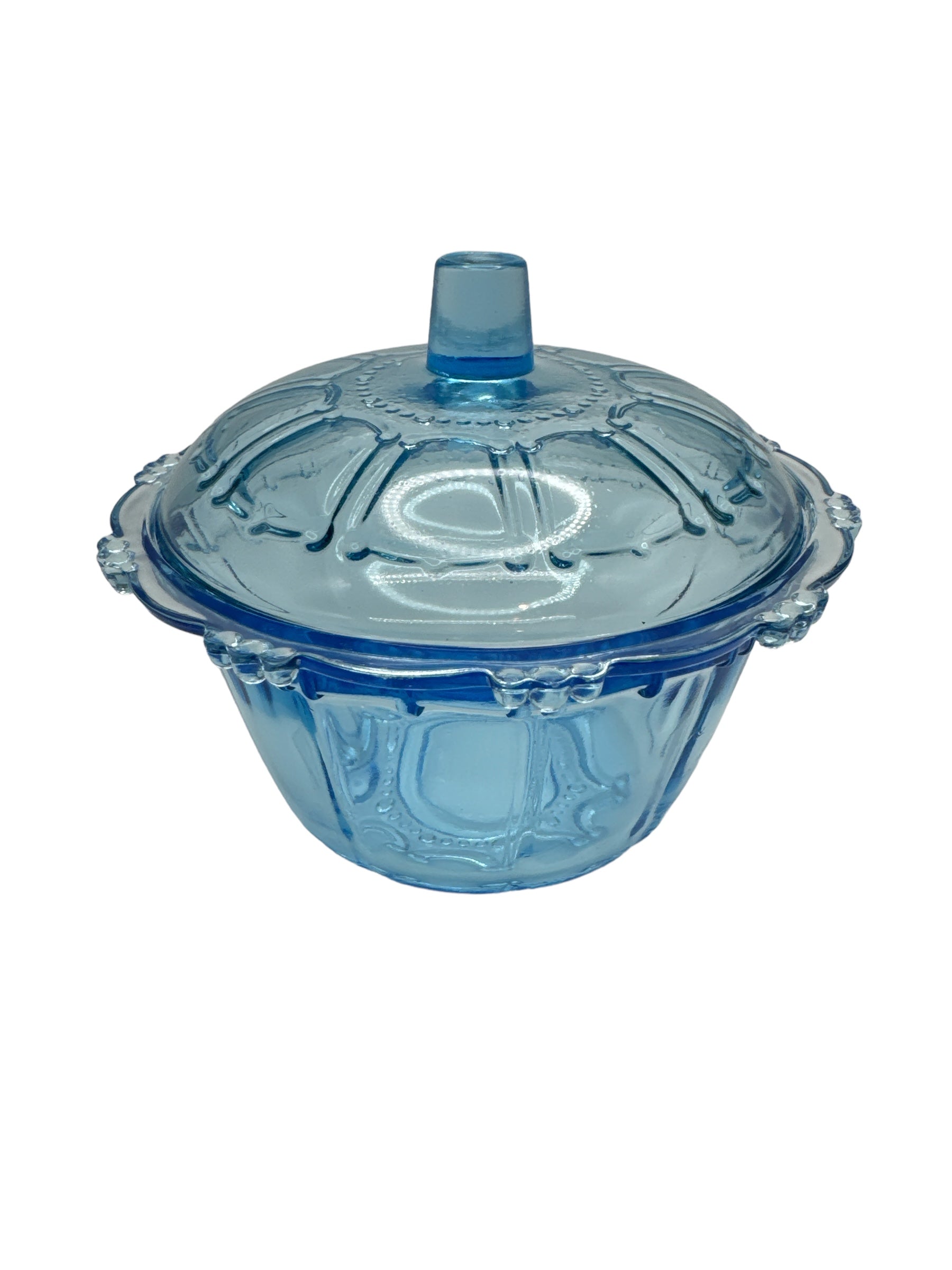 This charming trinket dish comes in a light blue hue and features a fun oyster pearl pattern from the groovy 1970s. Keep an eye out for a minuscule flea bite on the lid's interior, but don't let that stop you from loving this piece. Measuring 12.25 cm in both length and width and standing at a quirky 9 cm tall, it's the perfect size for storing your little treasures.