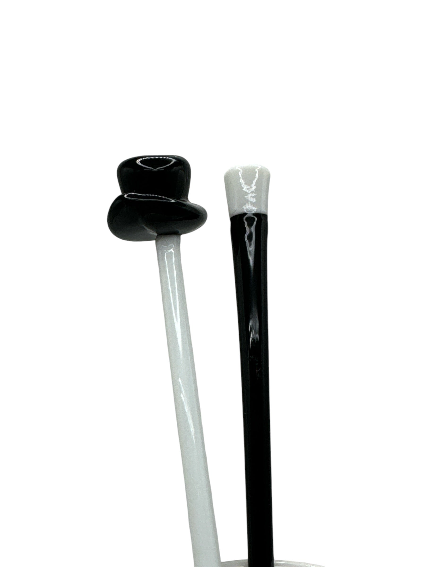 Elevate your cocktail experience with our opulent black magician wand and matching top hat stir sticks. Crafted with care, these stylish accessories exude elegance and sophistication. Embrace the magic of your drink with these high-quality, pre-loved pieces.
