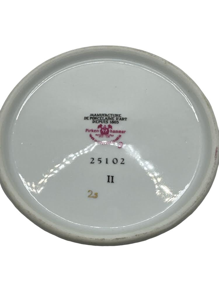 Introducing a delicate and exquisite addition to your collection: the d’art depuis 1803 reticulated Pirken Hammer plate, handcrafted in Czechoslovakia. Adorned with charming pink flowers and a 24k gold edge in pristine condition, this plate measures 24.5cm x 24.5cm x 3cm and boasts exceptional quality, free of any chips or cracks.