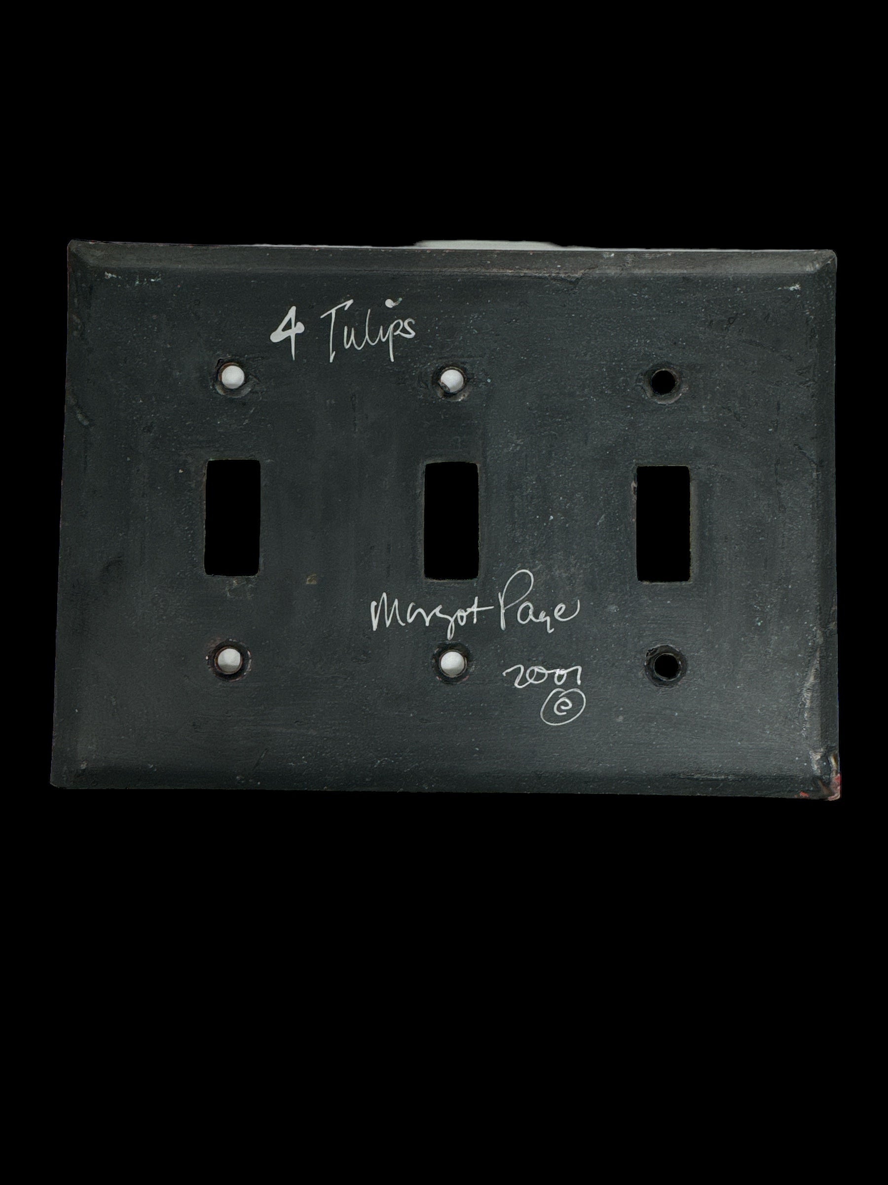 A 2007 hand-painted tulip light switch plate by Margot Page, meticulously crafted and in excellent condition without any chips or cracks.
