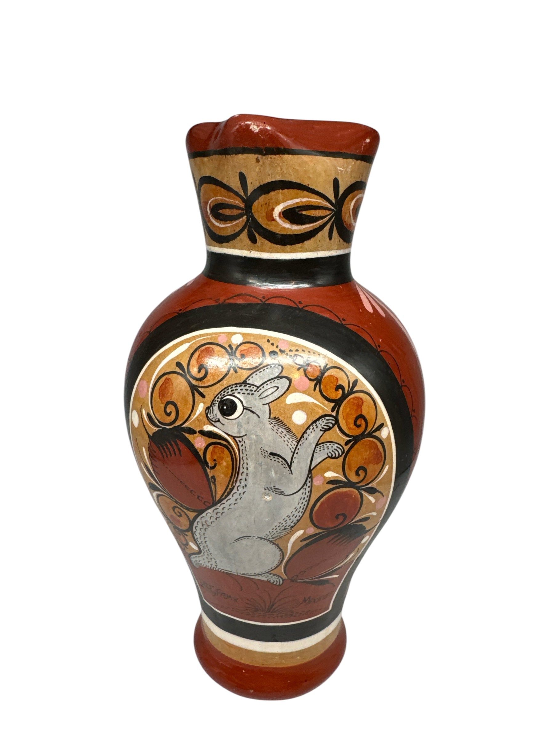 This exquisite pitcher boasts a unique squirrel design and is in impeccable pre-owned condition, adorned with the signature of its skilled artist. Measuring 10cm in length, 9.5cm in width, and 19cm in height, it is a magnificent addition to any collection.