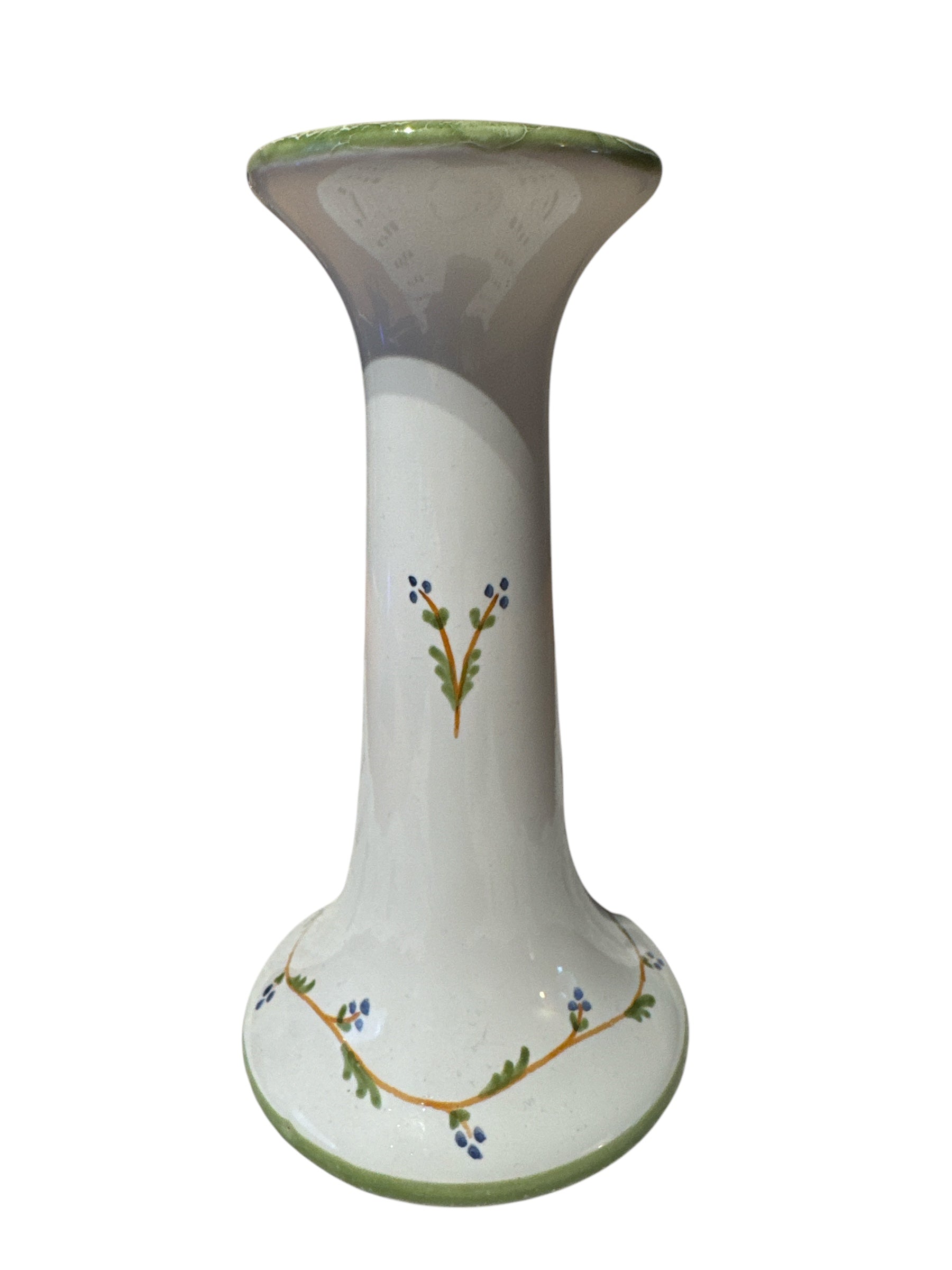 Crafted in France by Moustiery Atelierde Segries, the Pennysmith's 9R Vase boasts a delicate floral design and is in excellent used condition with no chips or cracks. Measuring 9cm in length, 9cm in width, and 16cm in height, this vessel is a stunning addition to any collection.