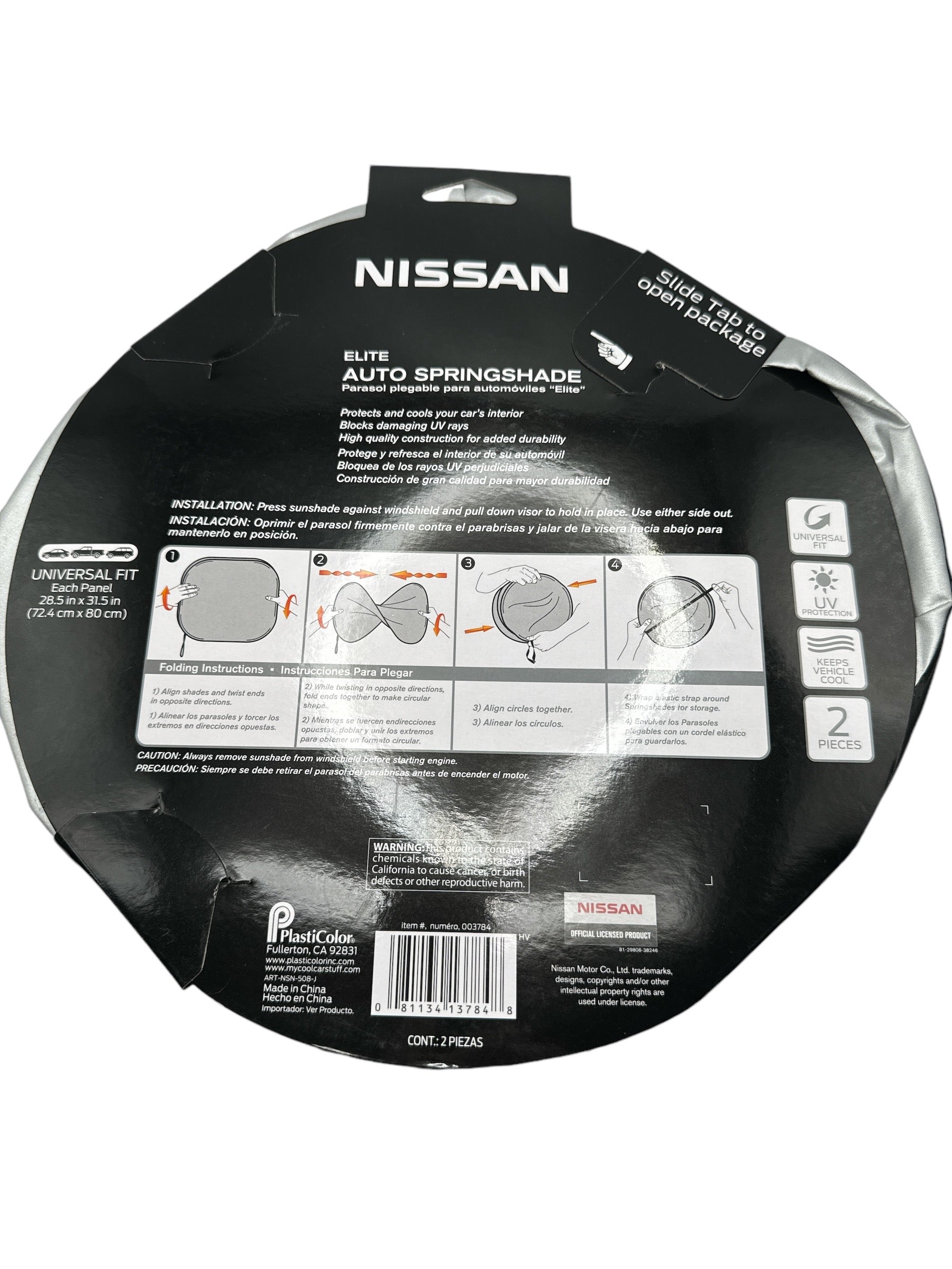 Indulge in luxurious protection against harmful UV rays with these sophisticated and exclusive auto spring shades. Each set includes 2 pieces, designed to fit any Nissan vehicle. Measuring 72.4cm x 80cm, these brand new shades come elegantly packaged for a truly premium experience.