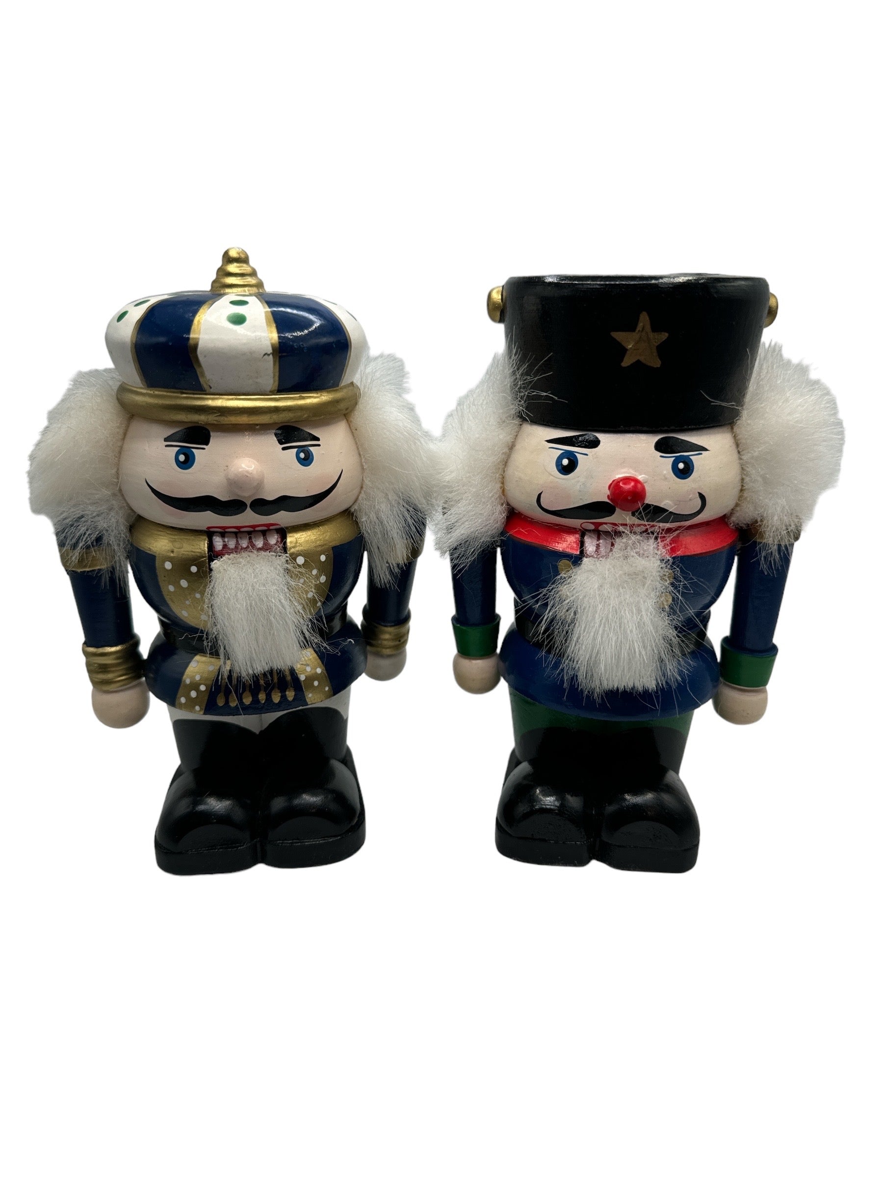 Authentic pair of wooden nutcrackers, both fully functional yet also serve as decorative elements. Each measures 15.5 cm in height.