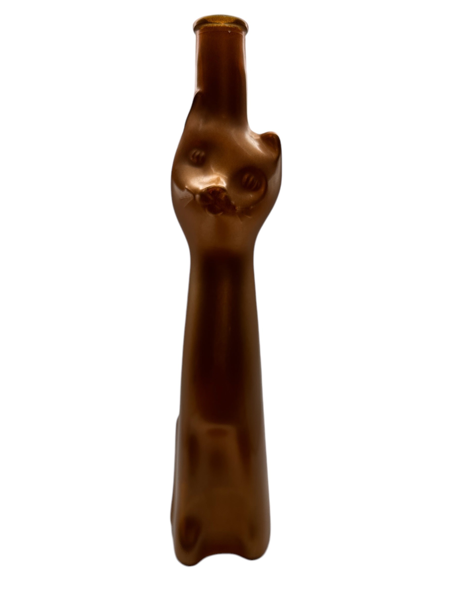 Add an elegant touch to your home with this felinely designed wine bottle, perfect as a decorative vase or for displaying your fine taste. In gently used condition with minimal wear.