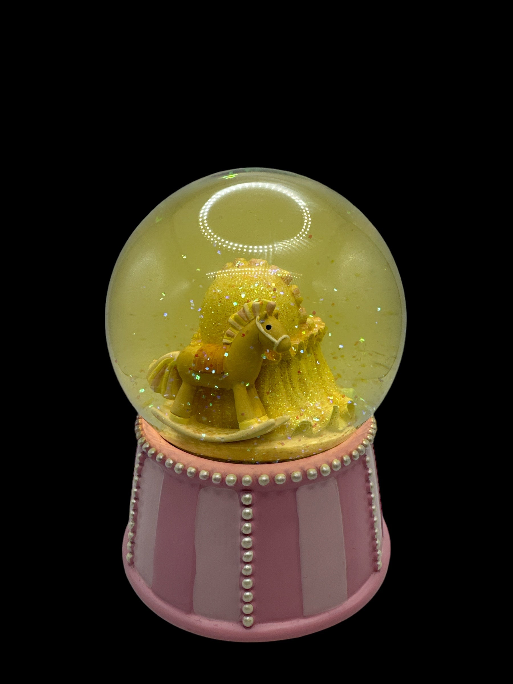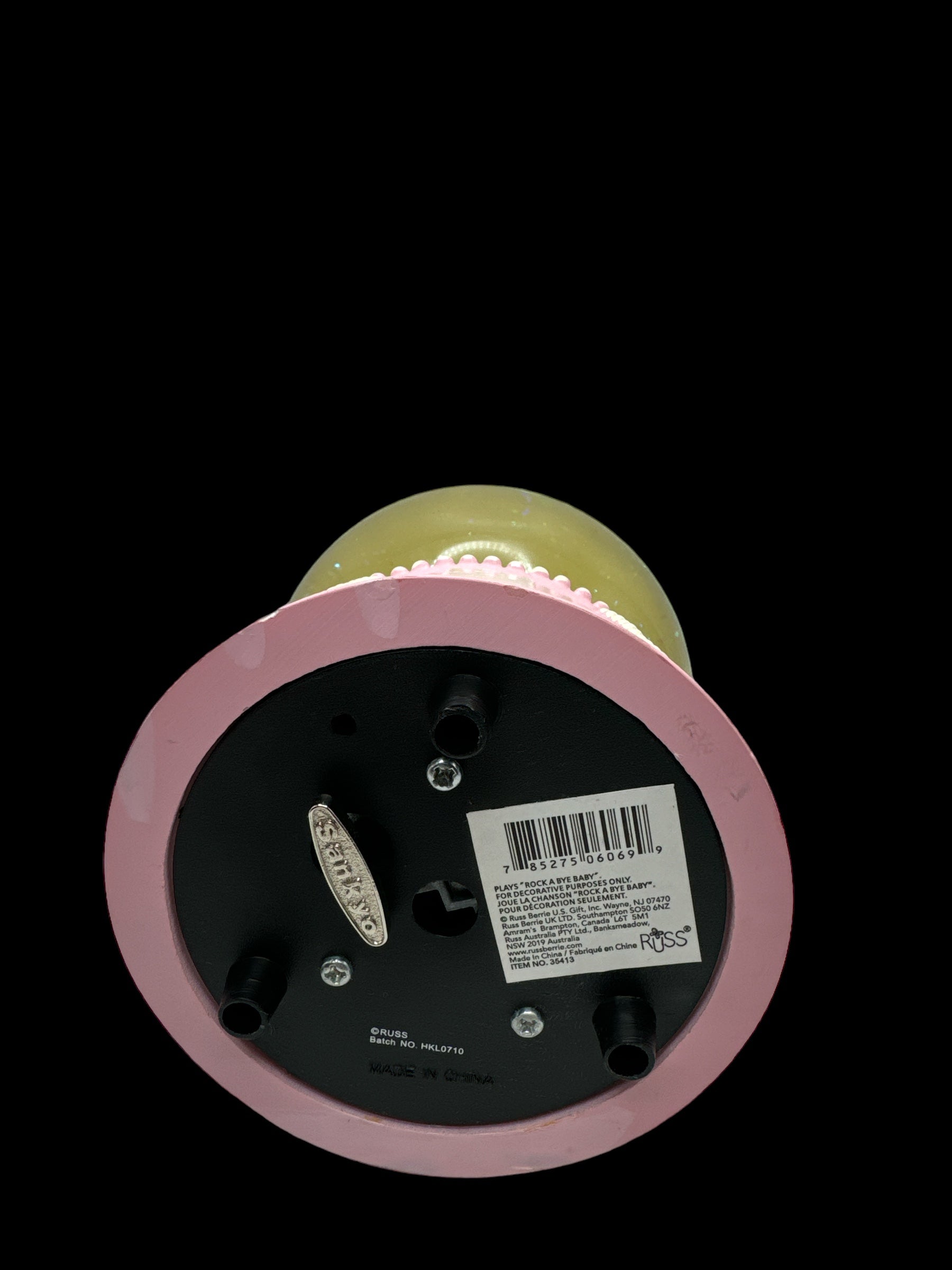 Experience the magical wonder of the Rock A Bye Baby Snow Globe, proudly created by Russ Berrie in China. The globe does have a yellow tinge to the water. The music box boasts impeccable functionality. Embrace the joy and beauty of this snow globe, a must-have for all dreamers and believers.