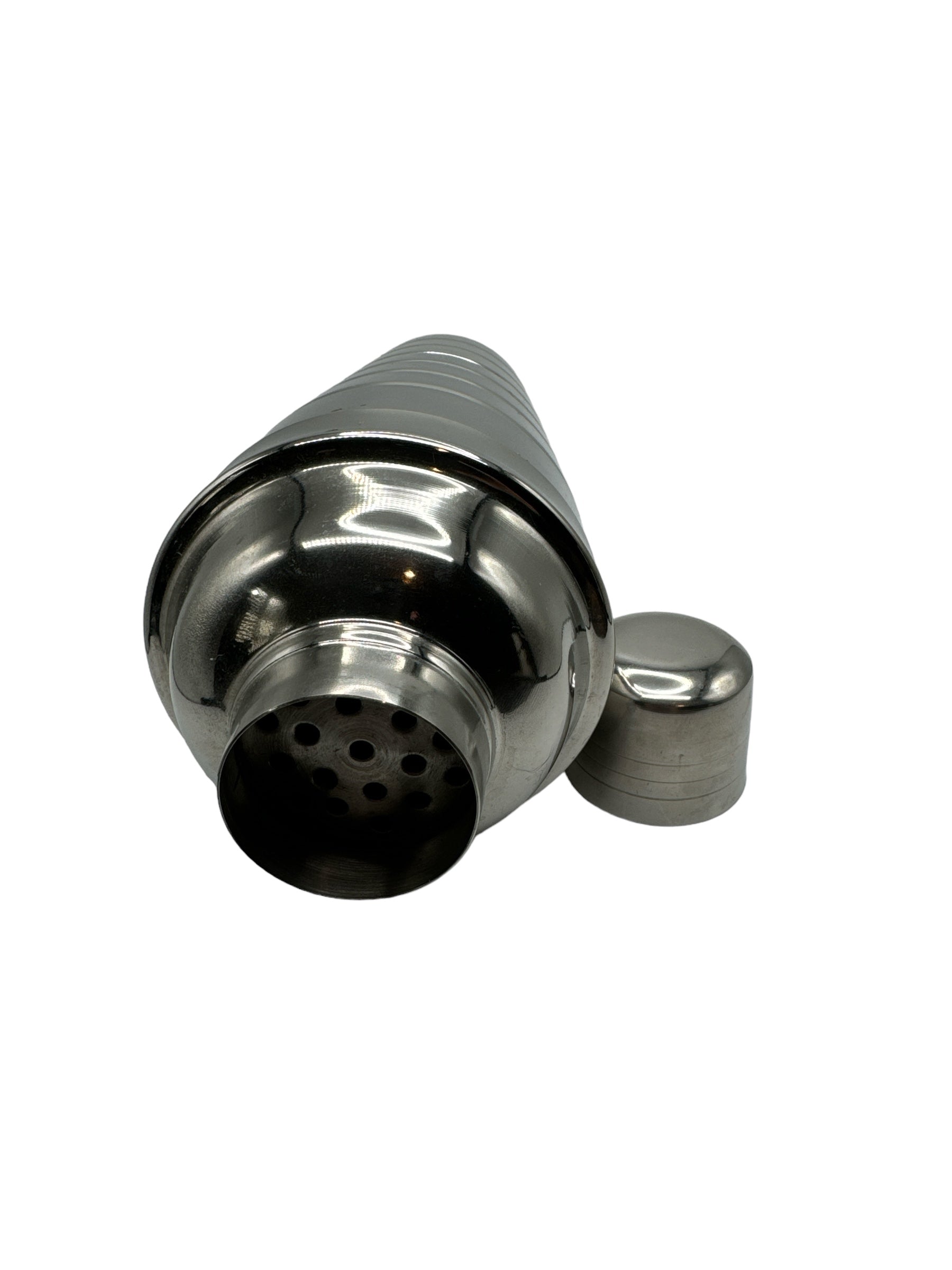 Exquisite three-piece cocktail shaker, in impeccable condition. Measuring 8.5cm in length, 8.5cm in width, and 23cm in height.