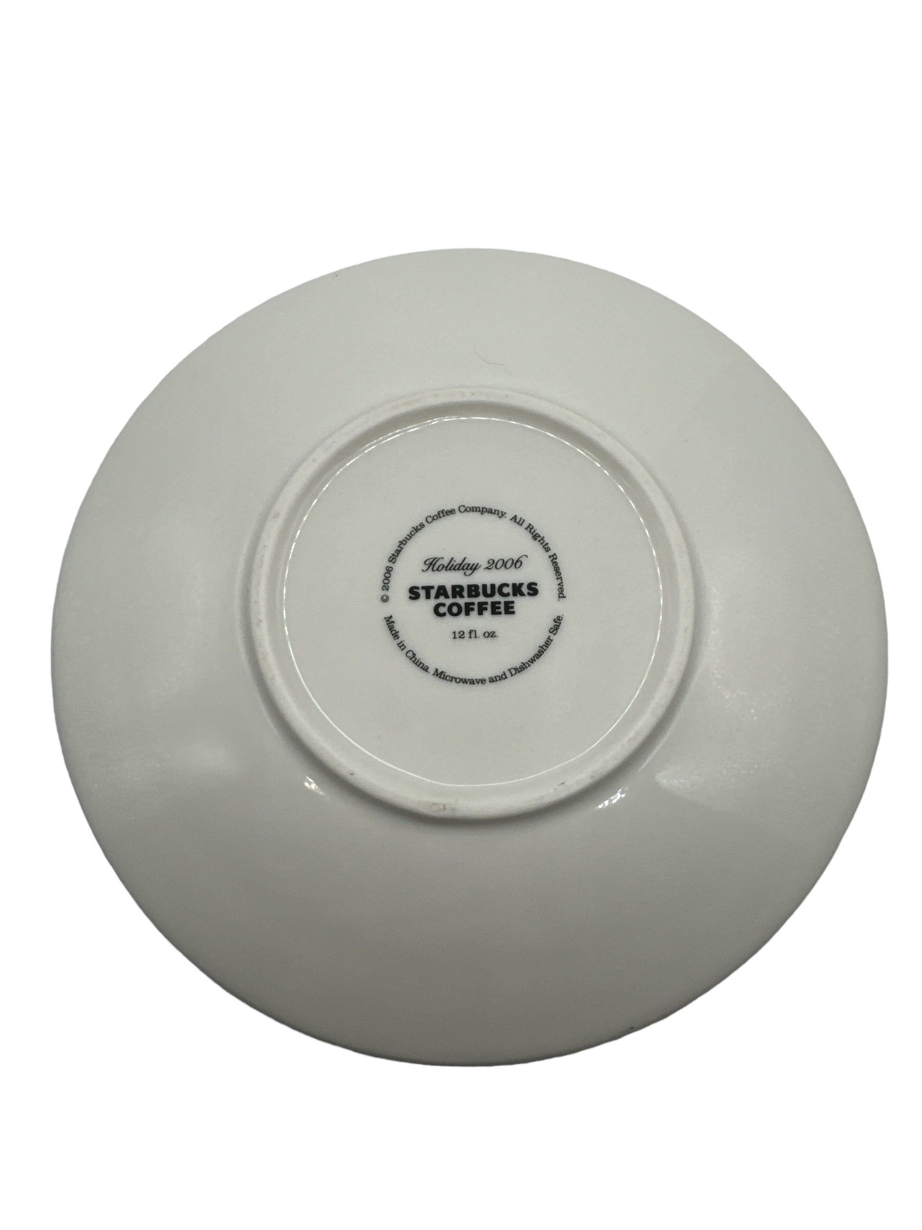 Introducing the 2006 Starbucks Christmas tree cup & saucer, featuring festive red trees and charming white stars. Perfect for savoring 12 fluid ounces of your favorite holiday drink.
