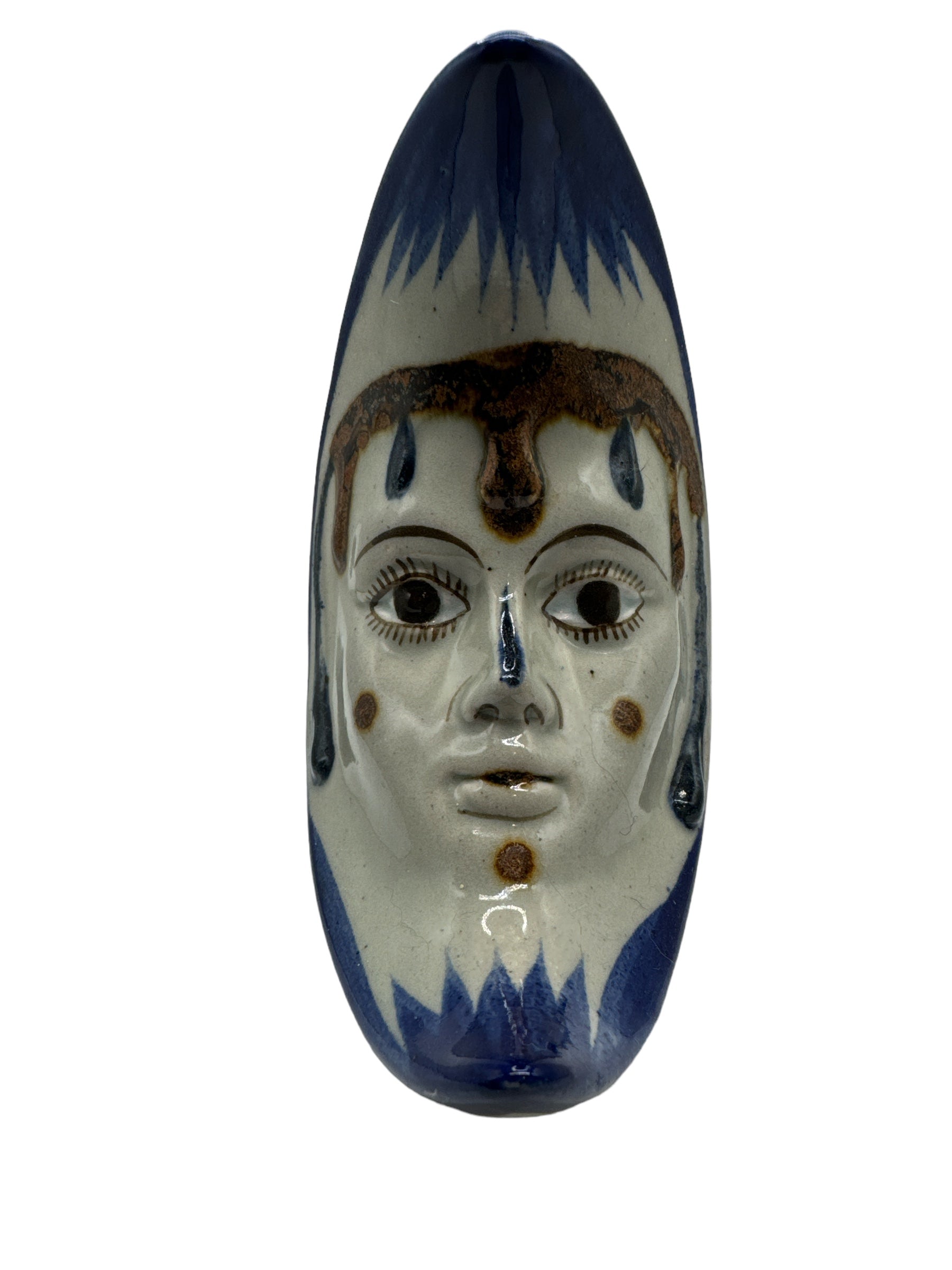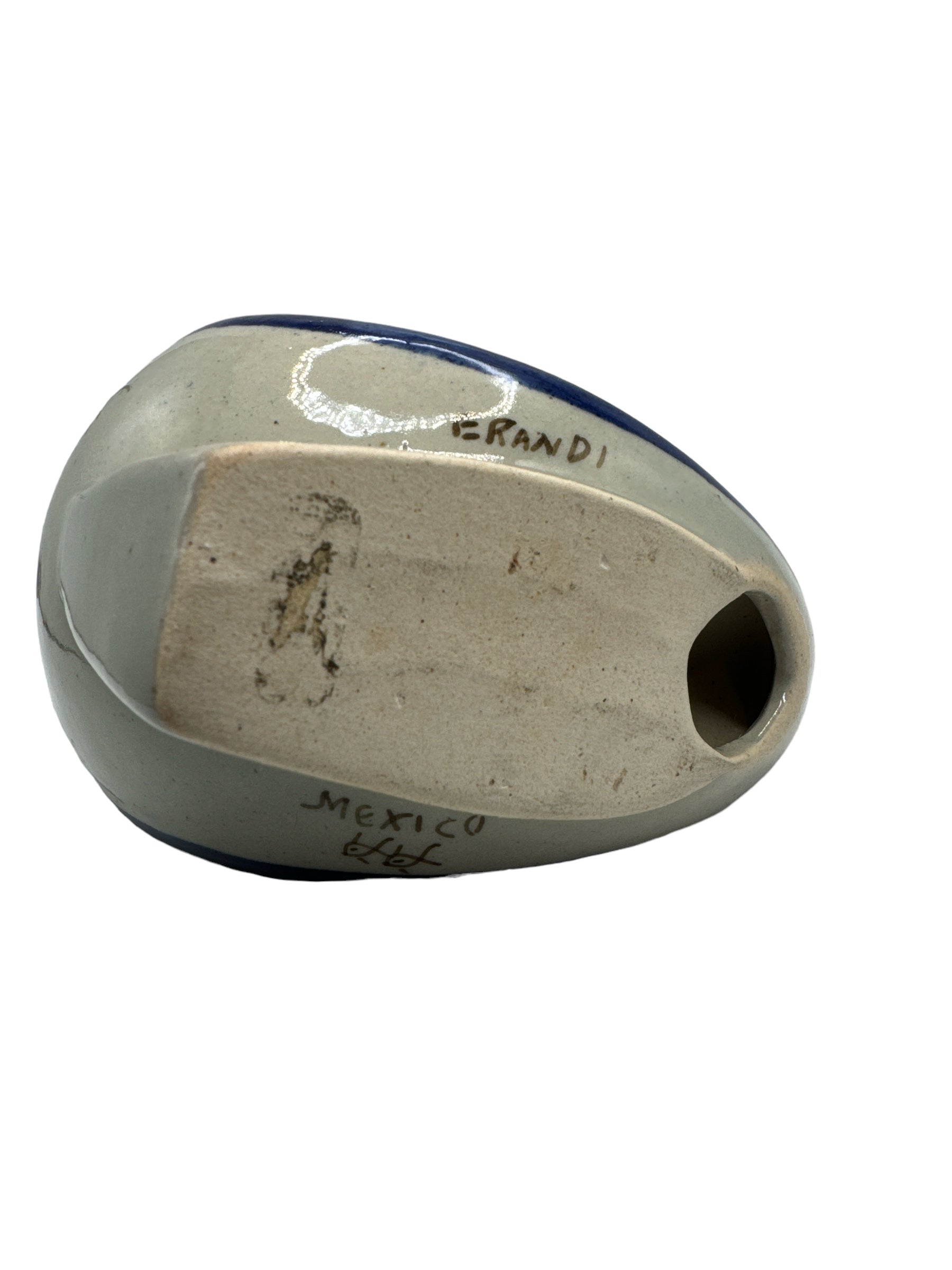 Experience the beauty and sophistication of Artesanias Erandi's Tonala Mexican Pottery. This exquisite crescent moon face is adorned with vibrant colors, free from any chips or cracks, and exquisitely signed by the artist. Admire its elegant dimensions of 11.5 cm length, 7 cm width, and 13 cm height, adding a touch of luxury to your decor.