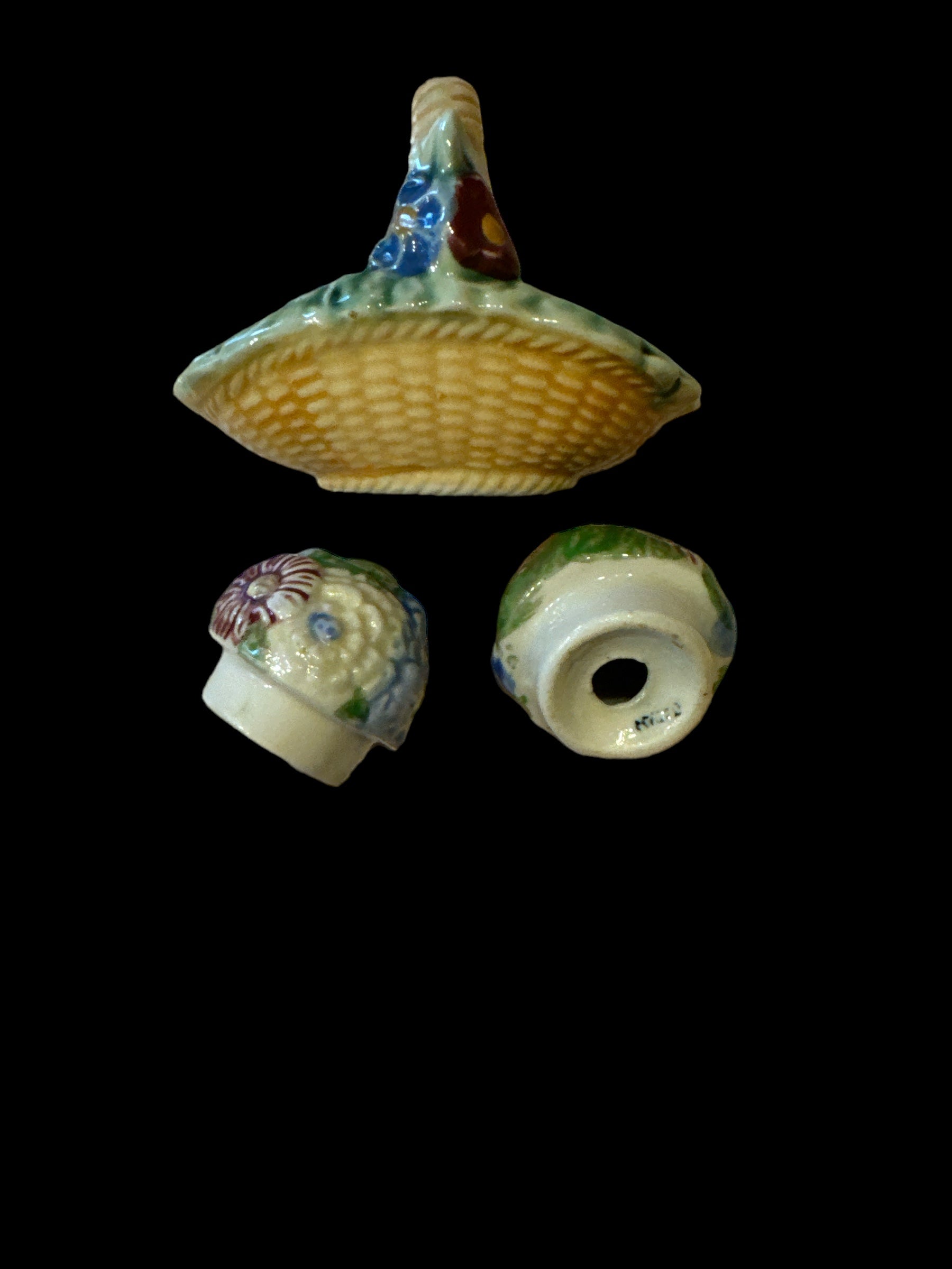 Handcrafted in Canada by Windsor, these ceramic Salt & Pepper Shakers come beautifully presented in a charming basket design. One shaker is missing the cork stopper.