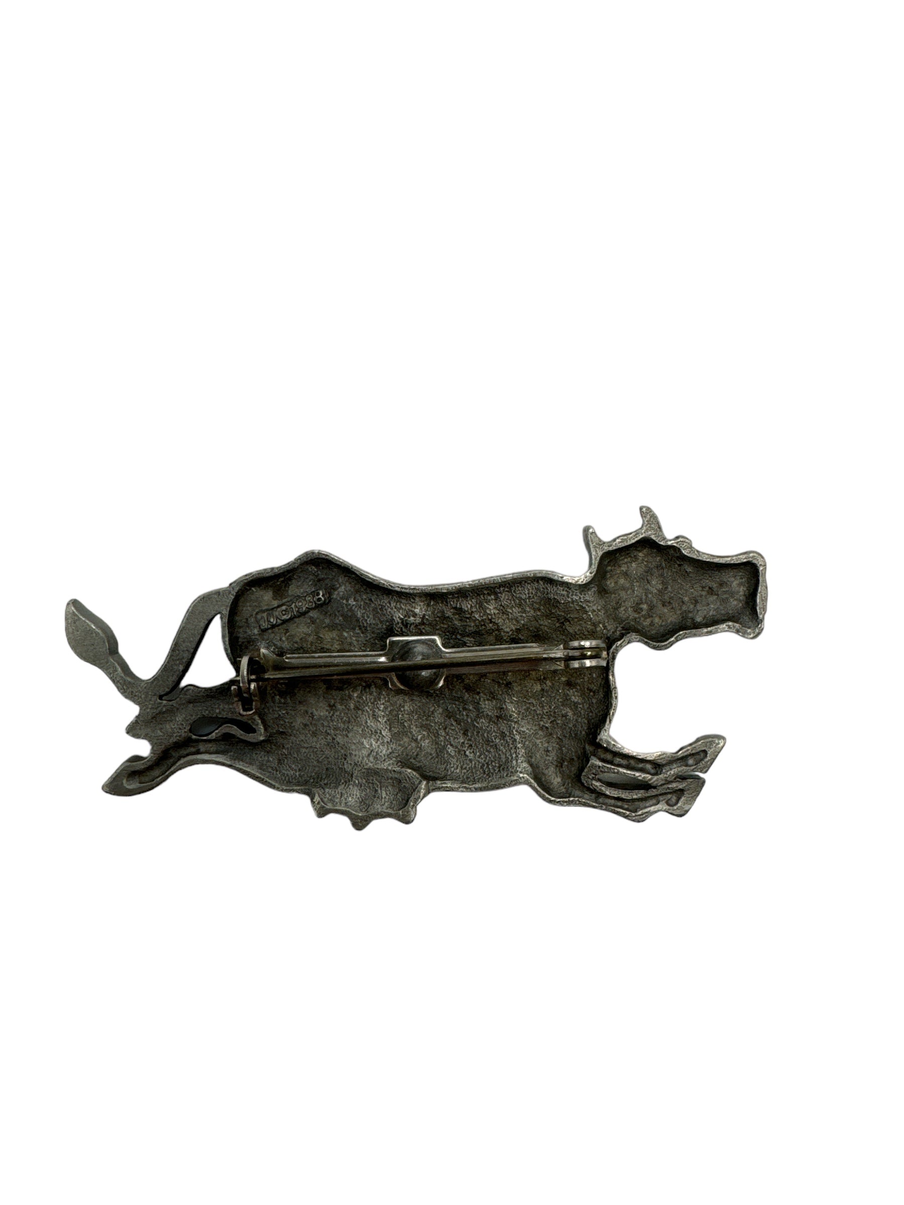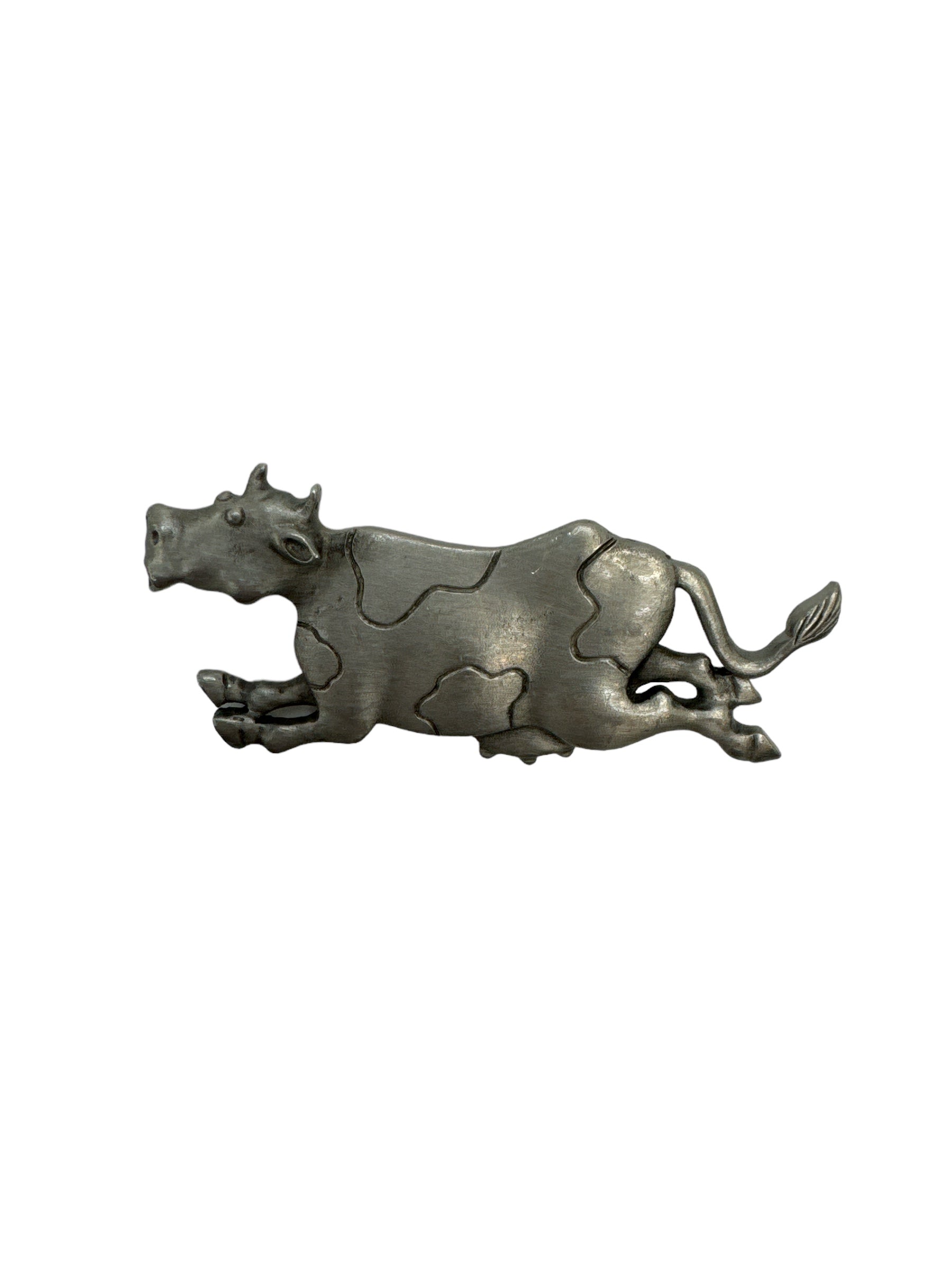 This stunning vintage brooch, signed JJ 1988, boasts the scene of a cow jumping over the moon. Measuring 6.5 cm in length, 1 cm in width, and 3 cm in height, it is sure to captivate and inspire!