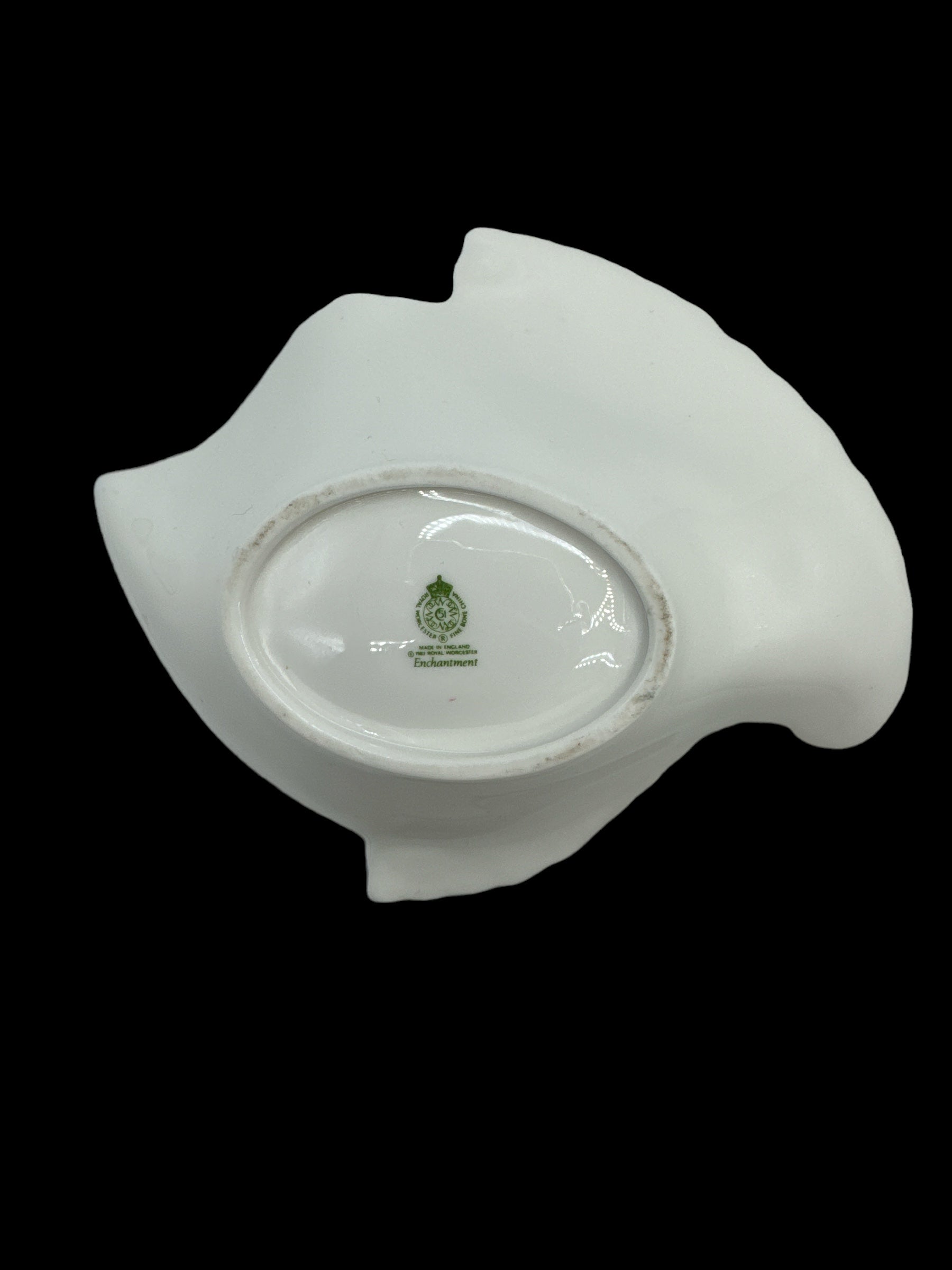 This beautiful Royal Worcester Fine Bone China Dish features an enchanting 1982 pixie and flower pattern handcrafted in England. Measuring 13.5 cm in length, 11 cm in width, and 3.5 cm in height, it is a true work of art.