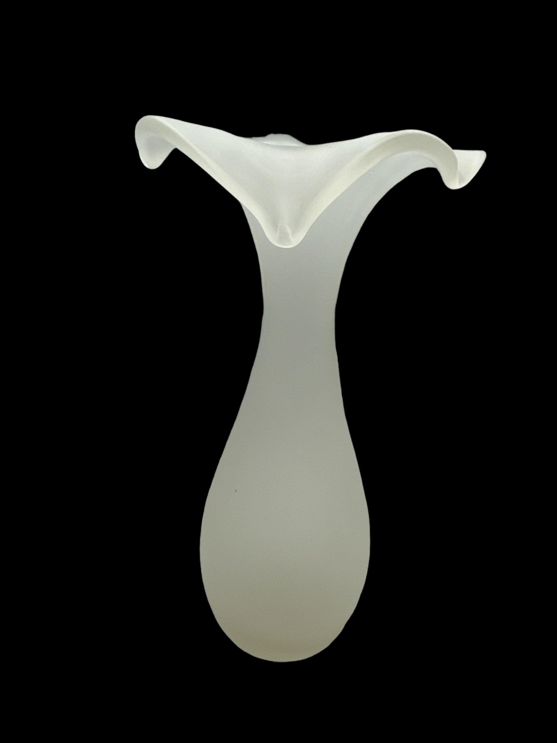 Indulge in the beauty of this exquisite Vintage Satin Glass Vase. Its frosted clear glass and pulpit-like design add a touch of elegance to any space. Measuring 10.5 cm in length and width, and 19 cm in height, this vase is in good used condition, ready to add a charming touch to your home decor.